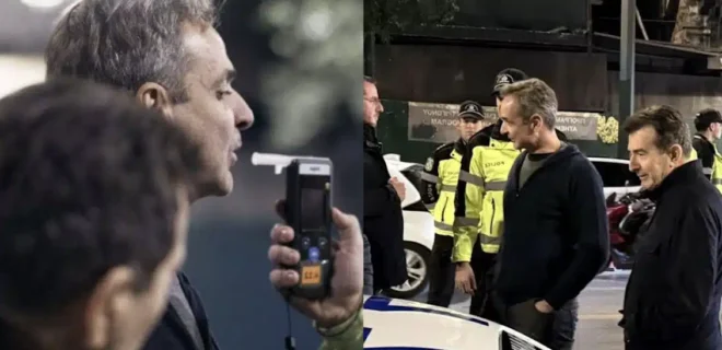 Ο Κυριάκος Μητσοτάκης επισκέφθηκε το βράδυ του Σαββάτου (13 Δεκεμβρίου 2025) ένα από τα πολλά σημεία στην Αθήνα όπου η Ελληνική Αστυνομία πραγματοποιεί ελέγχους αλκοτέστ σε οδηγούς.