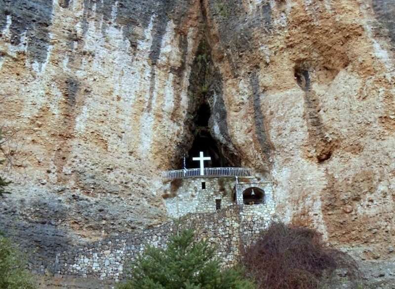 Δύο από τις πολλές ρηγματώσεις των απόκρημνων καταπτώσεων διαμορφώνονται σε σπηλαιώδεις κοιλότητες η μία εκ των οποίων έχει αποκτήσει θρησκευτική ιδιοσυγκρασία αφού εκεί είναι χτισμένη η ιδιότυπη Ιερά Μονή της Παναγίας του Βράχου.