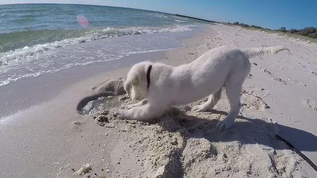 Ένα λευκό κουταβάκι παίζει σκάβοντας την άμμο στην παραλία και τρελαίνεται όταν σκάει το κύμα και του χαλάει το παιχνίδι by Newsroom 13.05.2020 18:13 written by Newsroom