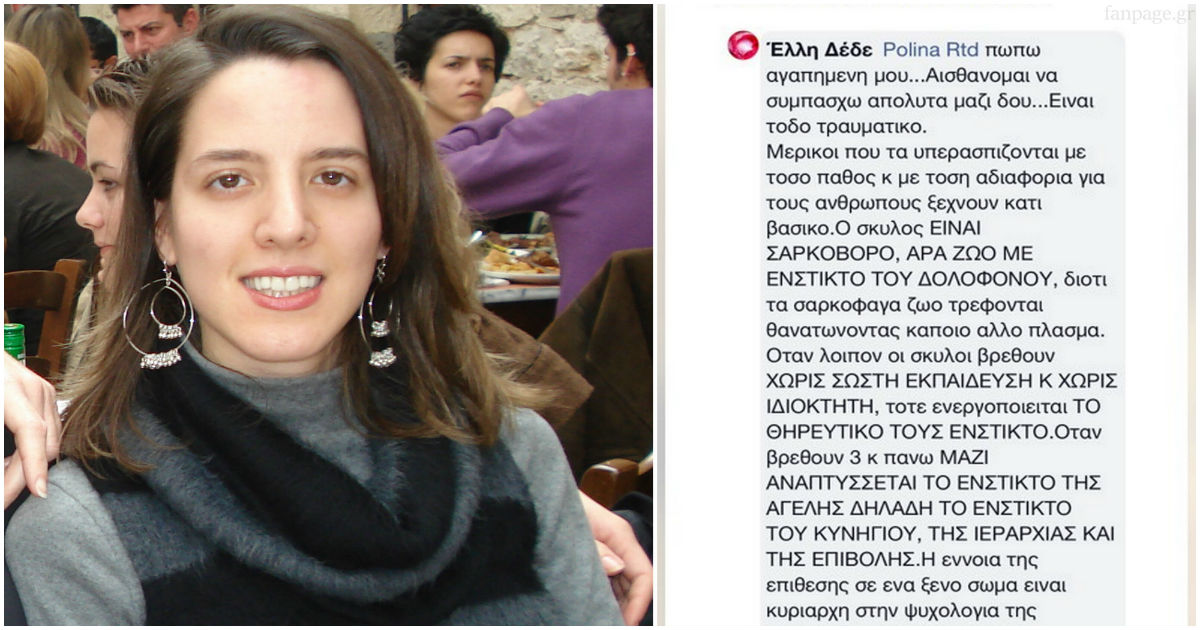 Έλλη Δέδε, πρώην υποψήφια δημοτική σύμβουλος Διονύσου: “Ο σκύλος ΕΙΝΑΙ ΣΑΡΚΟΒΟΡΟ, ΜΕ ΕΝΣΤΙΚΤΟ ΤΟΥ ΔΟΛΟΦΟΝΟΥ. by Newsroom 03.09.2019 23:12 written by Newsroom